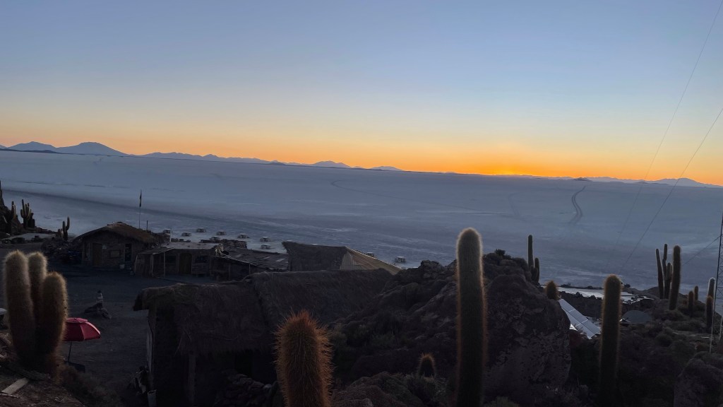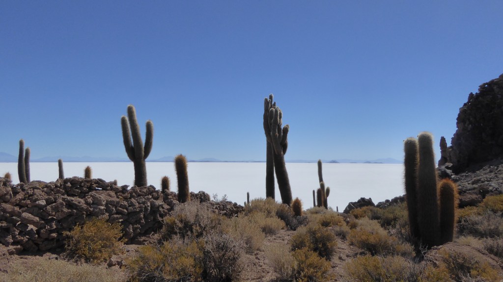 Von Jirira sind wird dann über den Salar de Uyuni zur Isla Incahuasi geradelt, wo wir eine Zeltnacht verbracht haben