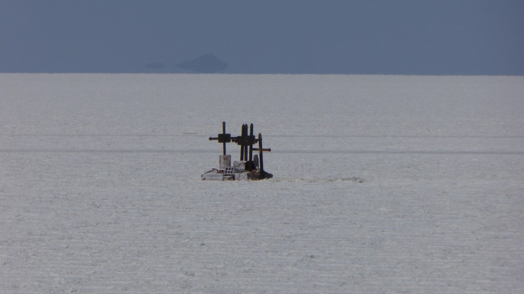Leider gibt es auch immer wieder Unfälle auf dem Salar, wovon etliche Kreuze zeugen