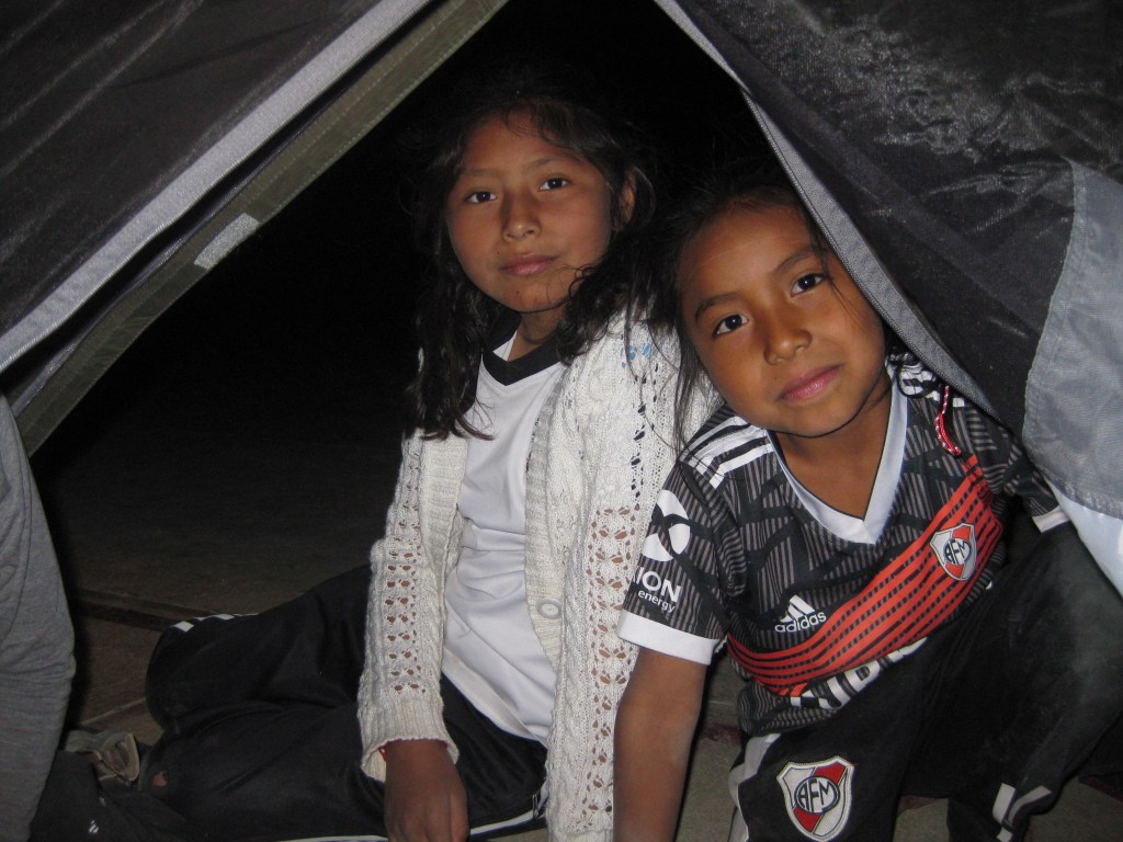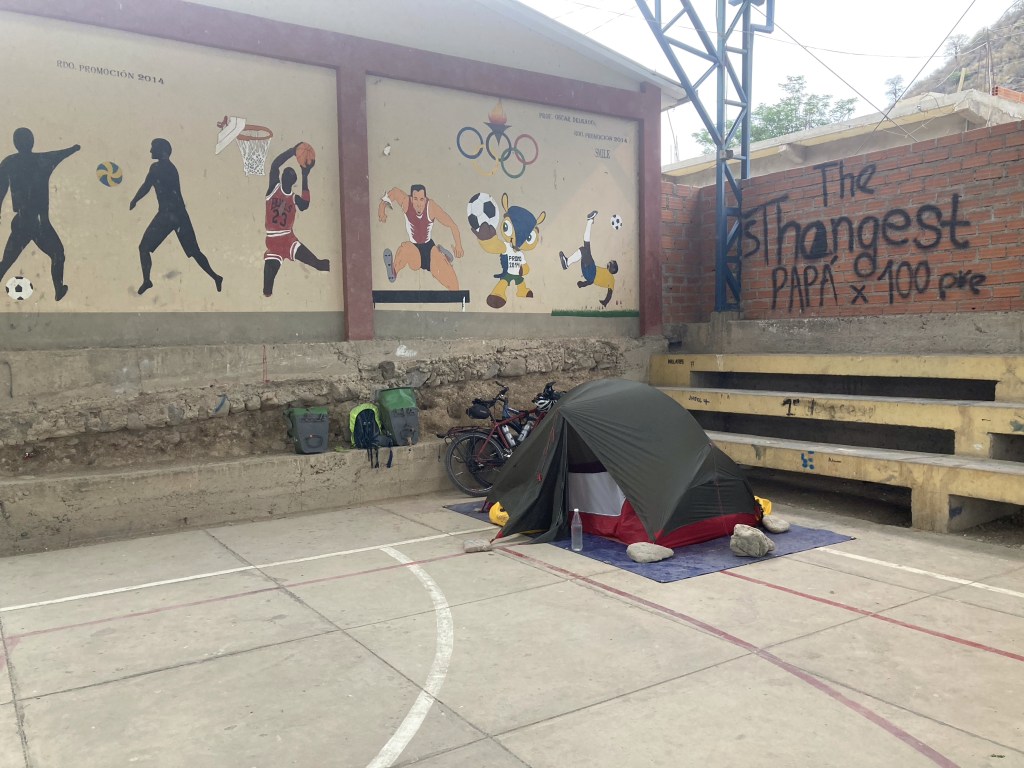 Am Ende des ersten Tages durften wir in Millares am Sportplatz der Schule campieren und waren bei den Kindern des Dorfes die Hauptattraktion.