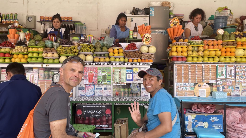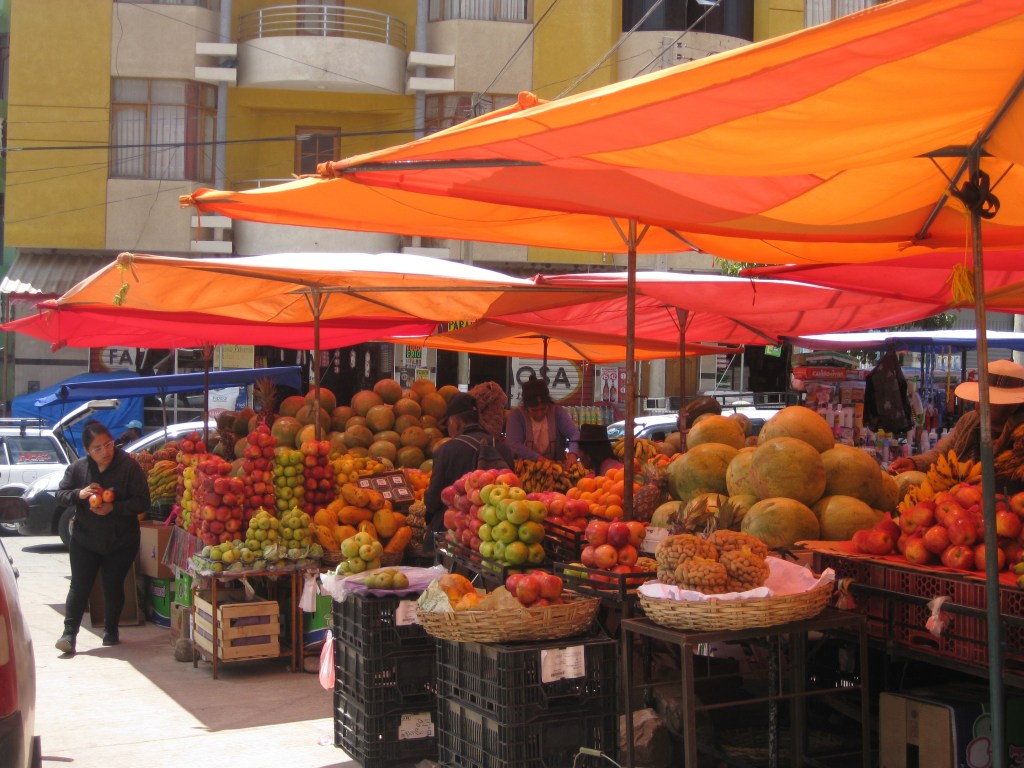 Auf der Fahrt selbst gibt es keine landschaftlichen Highlights wie die letzen Tage, dafür merkt man, wie sich durch das Herunterfahren auf 2200m die Natur ändert. Es gibt auf einmal Wiesen, blühende Bäume, Vögel, Grillen, …. Auch die Märkte in den Orten werden bunter.