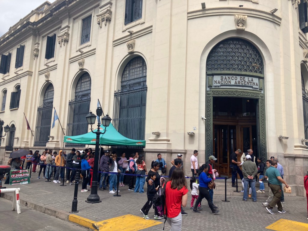 Da die Bankomaten nur 15.000 Pesos ausspucken, ist es ein Markenzeichen, dass bei jedem Bankomaten immer eine Menschenschlage steht.