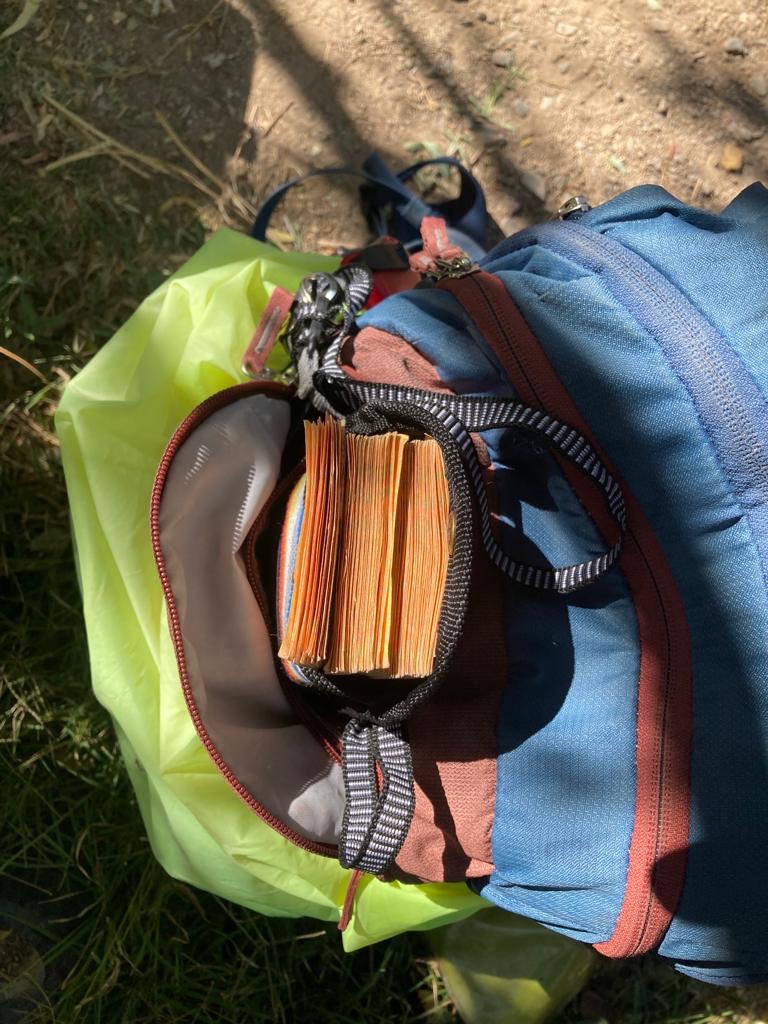 Da der größte argentinische Geldschein 1000 Pesos ist (Gegenwert ca 1€), ist man immer mit einer Unmenge von Scheinen unterwegs (z.B im Bild haben die Scheine einen Gegenwert von ca. 200€)
