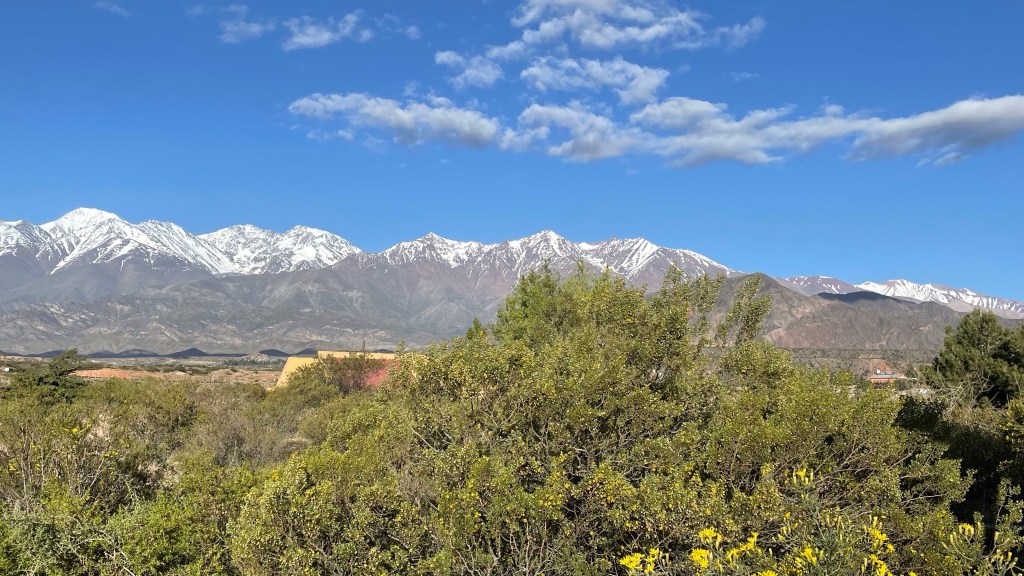 So sind wir von Mendoza nicht direkt Richtung Süden gefahren, sondern haben den Umweg über ein schönes Andental und eine beeindruckende Hochebene gemacht, um direkt im Weinbaugebiet südlich von Mendoza zu landen.