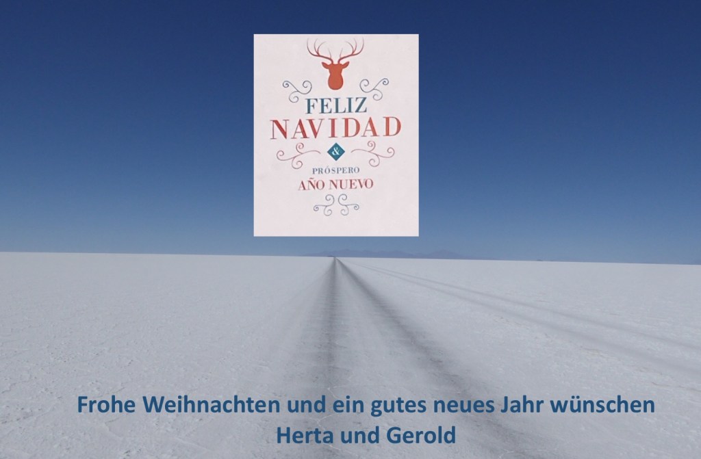 liebe herta, lieber gerold für euch ach frohe weihnachtsfeiertage und alles, alle gute und libe für das neue jahr … auf das eure radreise weiterhin so spannend und schön verlaufen möge … glg aus wien