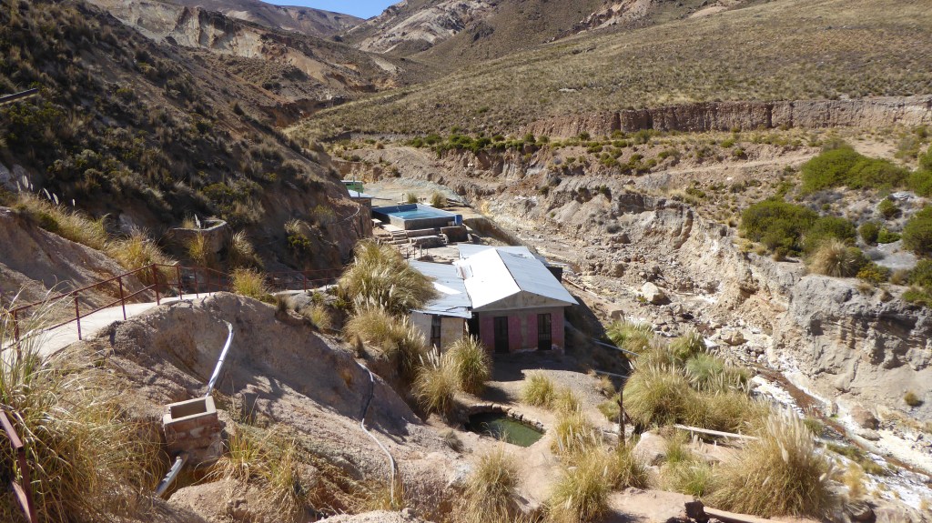 Nach einer Zeltnacht bei -2 Grad gehts entlang des Lago Chungara weiter zur Grenze und zum Dorf Sajama im Nationalpark Sajama, wo wir ein nettes Hostal beziehen.